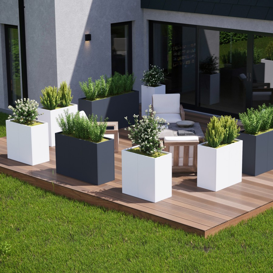 | NOVIA - Stahl | Novia, modulare Pflanzgefäße aus pulverbeschichtetem, elektrolytisch verzinktem Stahl. Elegant und minimalistisch, sind sie die ideale Ergänzung für Ihre Außen- und Innenräume. |