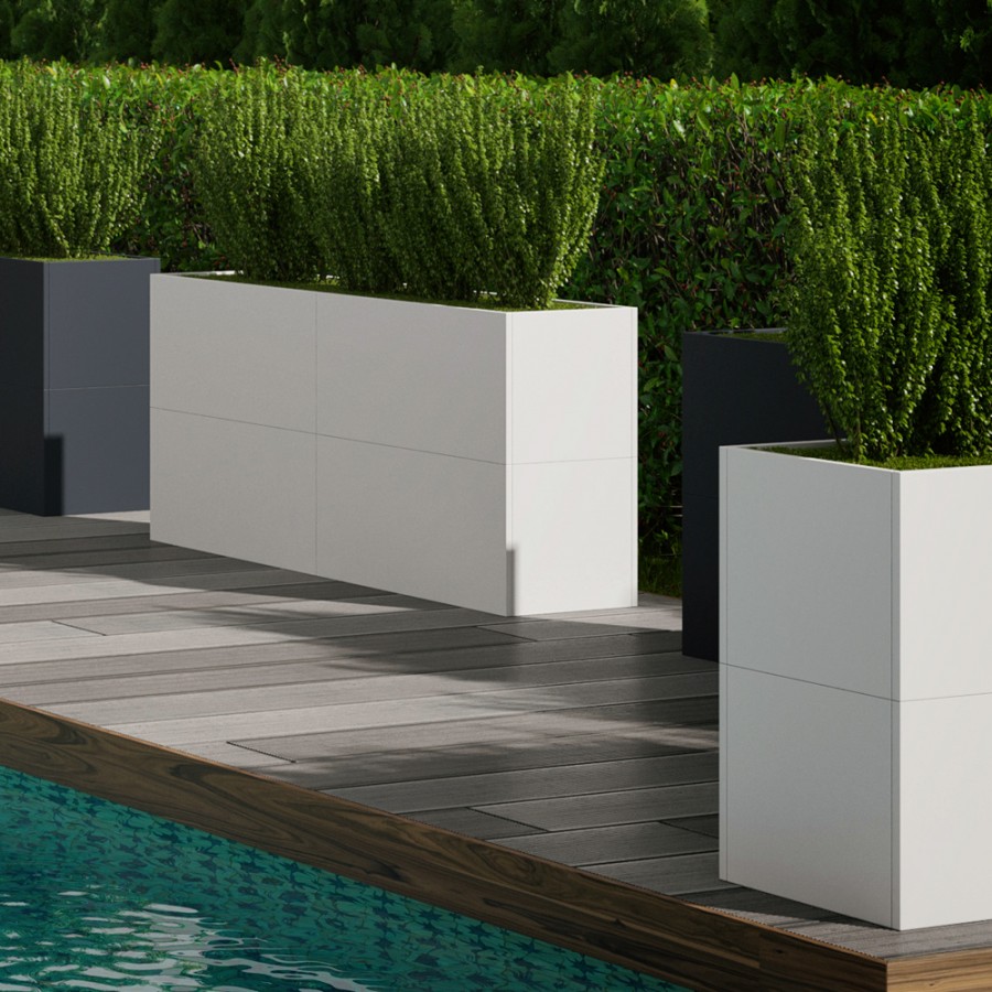 | NOVIA - Acero | Novia, jardineras modulares de acero electrogalvanizado pintado en polvo. Elegantes y minimalistas, son el complemento ideal para tus espacios exteriores e interiores. |