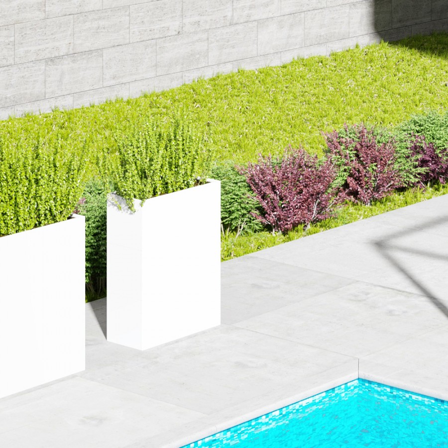 Novia By EEXAA Jardineras modulares en acero electrogalvanizado con recubrimiento de polvo. Dimensiones de 80x44x120H cm. Elegantes y minimalistas son el complemento ideal para tus espacios exteriores e interiores. Excelente para tus pérgolas, con doble fondo para contrapeso y flores para evitar perforar el piso. Completo con un sistema de aislamiento frío/calor, riego, drenaje y reserva de agua.