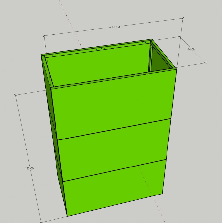 | Componentes | Las jardineras modulares están compuestas por paredes, refuerzos para bases, piesy bolsas perfiladas en PVC para llevar el suelo que se ensamblan entre sí gracias a soportes en acero galvanizado pintado de fácil montaje y alta limpieza estética |