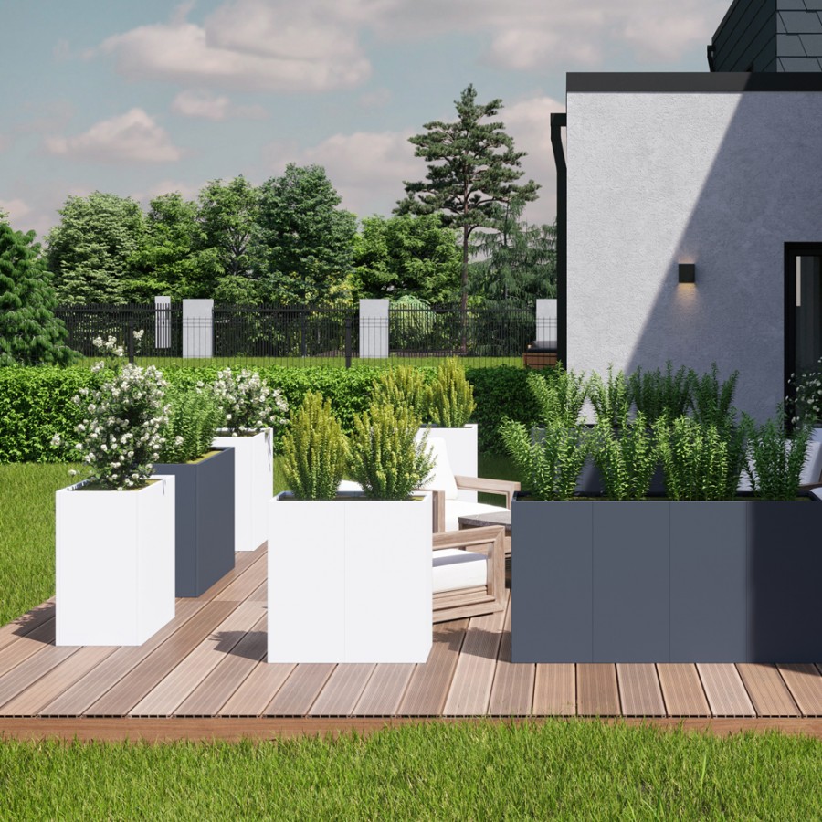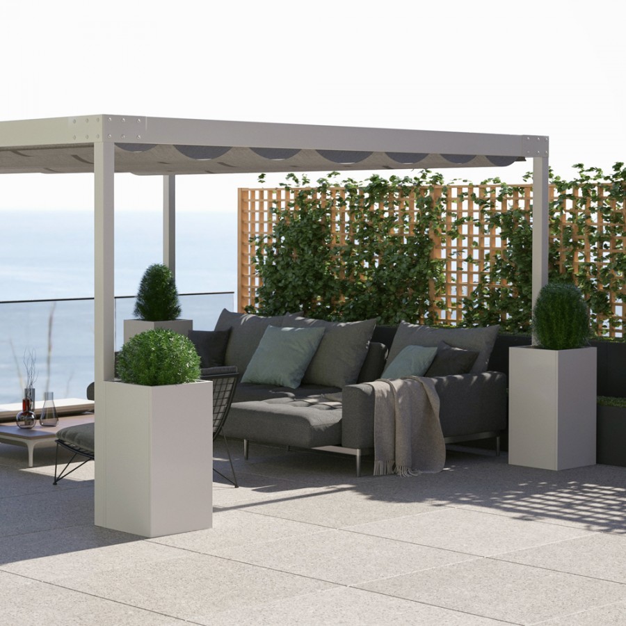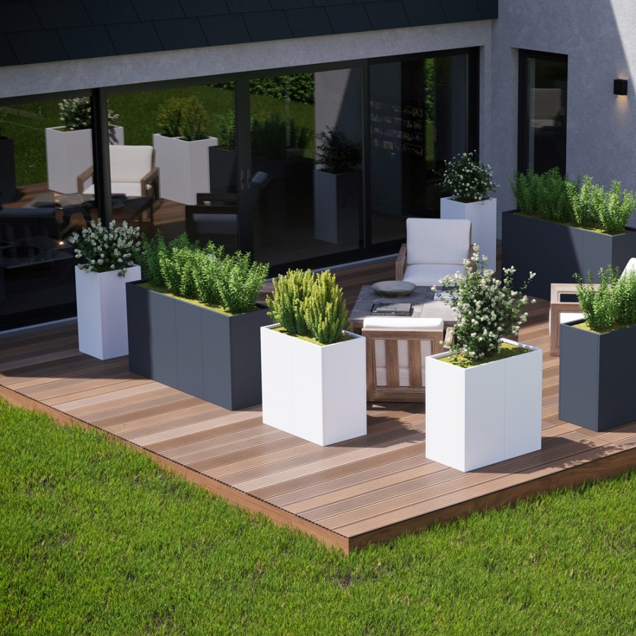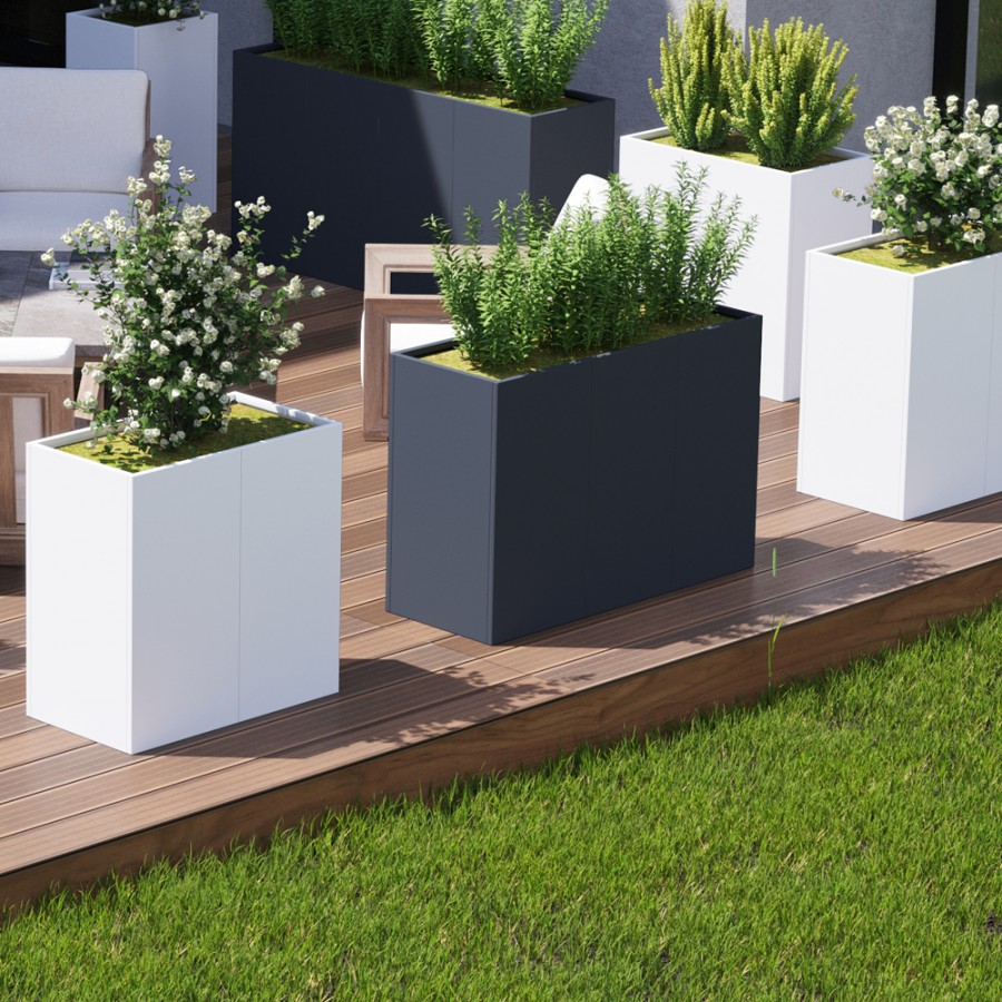 | NOVIA - Acier | Novia, jardinières modulaires en acier électrozingué thermolaqué. Élégants et minimalistes, ils sont le complément idéal pour vos espaces extérieurs et intérieurs. |