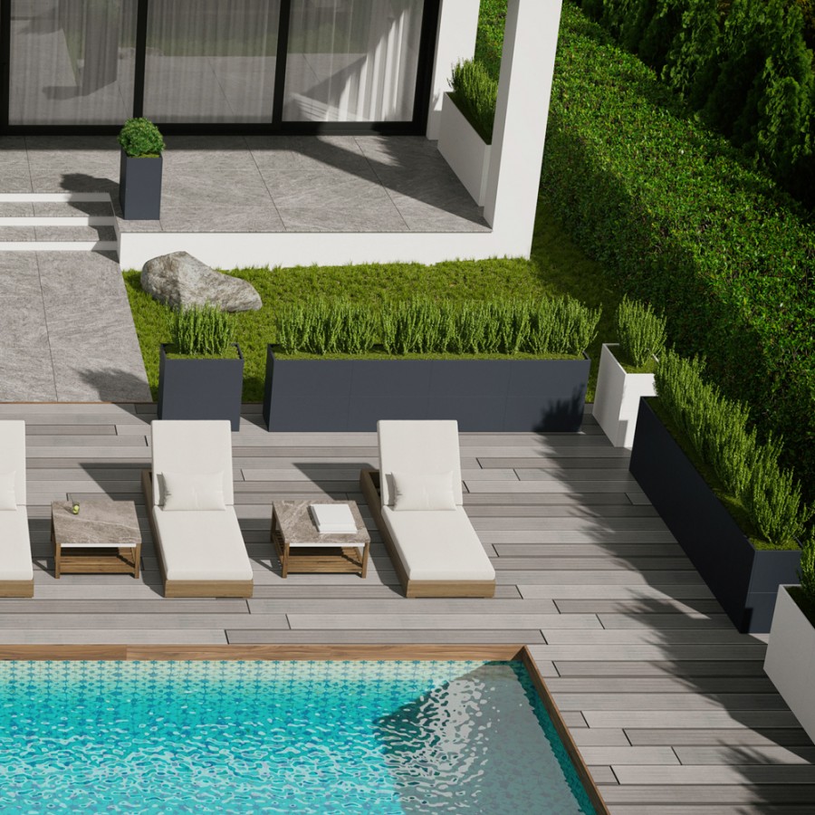 | NOVIA - Acier | Novia, jardinières modulaires en acier électrozingué thermolaqué. Élégants et minimalistes, ils sont le complément idéal pour vos espaces extérieurs et intérieurs. |