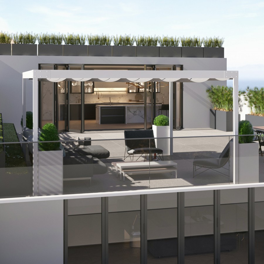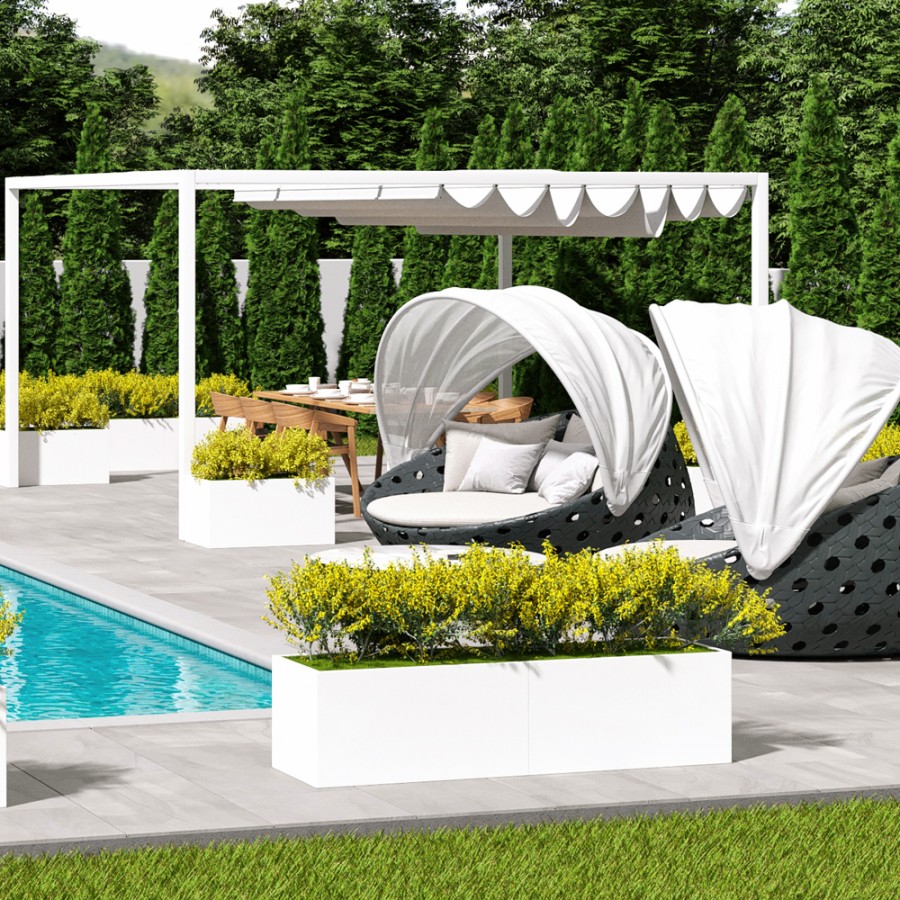 Novia Jardinières modulaires en acier galvanisé électro-galvanisé. Dimensions de 80x44x40H cm. Élégantes et minimalistes, elles sont le complément idéal pour vos espaces extérieurs et intérieurs. Excellent pour vos pergolas, avec double fond pour contrepoids et fleurs pour éviter de percer le sol. Complet avec un système innovant d'isolation chaud / froid, irrigation, drainage et réserve d'eau.