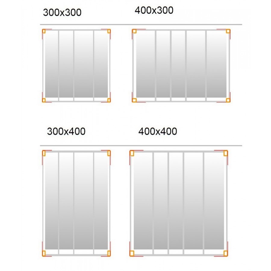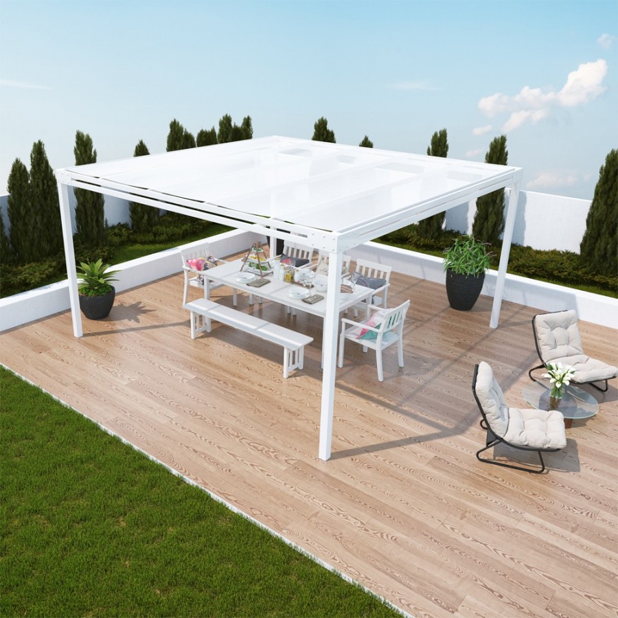 | Mesures | Pergola mesures maximales en cm 300x300 - 300x400 - 400x300 - 400x400. Hauteur 225cm (240cm modèle fixé au mur). |