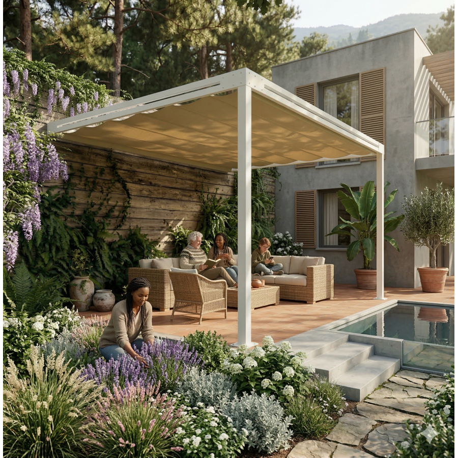 La pergola ha un design minimalista che si adatta perfettamente al nostro spazio esterno. Materiali di prima qualità e facilità di montaggio.